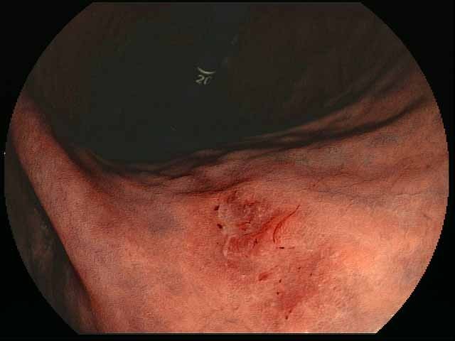 ³»½Ã°æ»ó 1cmÀÌÇÏÀÇ Á¡¸· ÇÔ¸ôº¯È°¡ º¸ÀÌ´Â ÀÛÀº ±Ë¾çÀÌ ¹ß°ßµÇ¾ú´Ù (±×¸² 1.2). Çü±¤Æ¯¼ö ÃÔ¿µ¿¡¼ º¸´Ù ÀÚ¼¼È÷ º´º¯ÀÌ ±¸ºÐµÇ¾ú´Ù(±×¸²3). Á¶Á÷°Ë»ç¿¡¼ ºÐȰ¡ ÁÁÀº À§¼±¾ÏÀ¸·Î Áø´ÜµÇ¾ú´Ù. Å©±â°¡ ÀÛ¾Æ Á¡¸·ÀýÁ¦¼úÀ» ½ÃÇàÇÒ ¿¹Á¤ÀÌ´Ù.