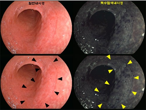 ÀÌ È¯ÀÚÀÇ ³»½Ã°æ »çÁø¿¡¼µµ ±×³É ºÁ¼´Â ¾îµð¿¡ ¾ÏÀÌ ÀÖ´ÂÁö ¾Ë±â ¾î·Æ°í ÃÖ½ÅÇü ³»½Ã°æ¿¡¼¸¸ °¡´ÉÇÑ Æ¯¼ö¿°»ö³»½Ã°æÀ¸·Î °üÂûÇØ¾ß ¾ÏÀÇ °æ°è°¡ Á¶±Ý º¸ÀÌ´Â µí ÇÕ´Ï´Ù. ¾Æ·¡¿¡ ȽÇÇ¥·Î Ç¥½ÃµÈ ºÎºÐÀÌ ¾Ï°ú Á¤»ó Á¶Á÷ÀÇ °æ°è·Î È»ìÇ¥ ¾ÈÂÊ ¿µ¿ªÀÌ ¾ÏÀÌ »ý±ä ºÎÀ§ÀÔ´Ï´Ù.